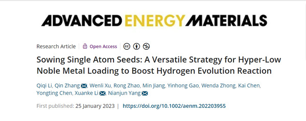 武科大网讯(通讯员吴蔓玲)近日,我校威廉官网中国官方网站李轩科教授和张琴副教授团队在《Advanced Energy Materials》期刊上发表题为“Sowing Single Atom Seeds: A Versatile Strategy for Hyper-Low Noble Metal Loading to Boost Hydrogen Evolution Reaction”的研究论文。博士生李琪琪和张琴为第一作者,李轩科、张琴、杨年俊为通讯作者,我校威廉官网中国官方网站煤转化重点实验室为论文第一单位。