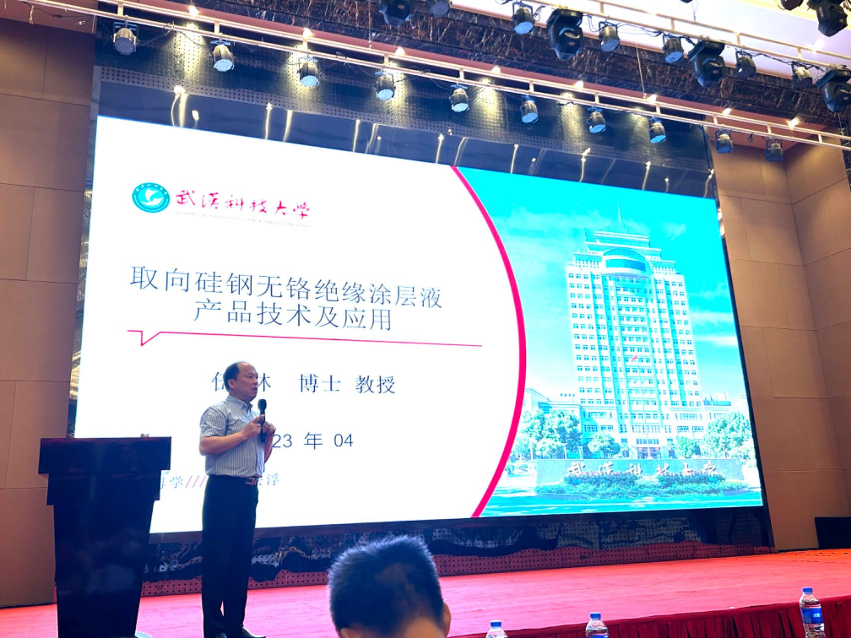 伍林教授介绍团队关于取向硅钢无铬绝缘涂层最新研究成果