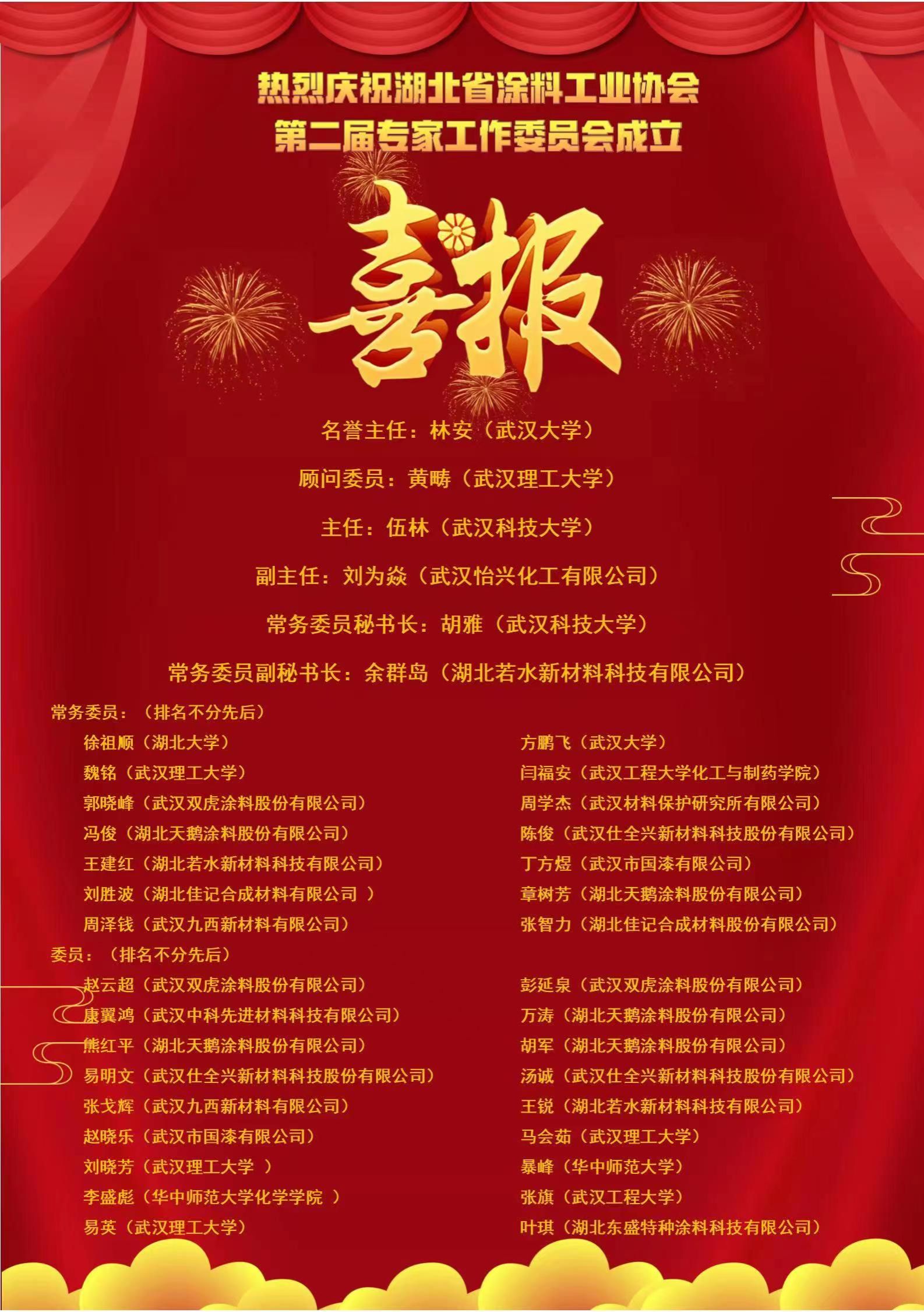 湖北省涂料工业协会第二届专家工作委员会成立喜报