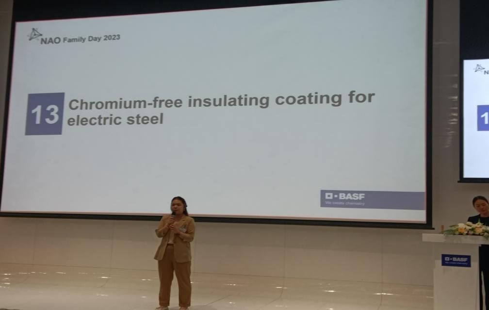 2023年6月29日-6月30日,伍林教授团队应邀参加巴斯夫NAO(Network for Asian Open Research)部门2023年第十届Family Day交流会议,并由其博士研究生刘盈做“Chromium-free Insulating Coating For Electric Steel”项目介绍。