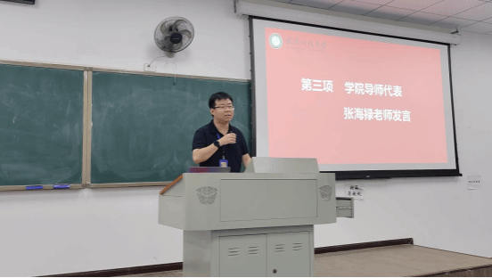 研究生导师代表张海禄教授结合自己的学习和研究经验,和大家分享了三点具体而实际的嘱托。一是树立一个既具挑战性又切实可行,并不断迭代的学业、职业和生活目标,通过不断的积累最终得到突破;二是希望大家培养好自己的逻辑思维,训练和保持我们的逻辑思维就是训练我们的生存能力;三是做真实世界中更好的自己,跟着走、动起来,努力在当下、不焦虑未来。