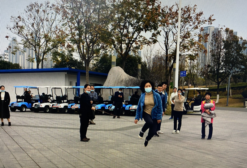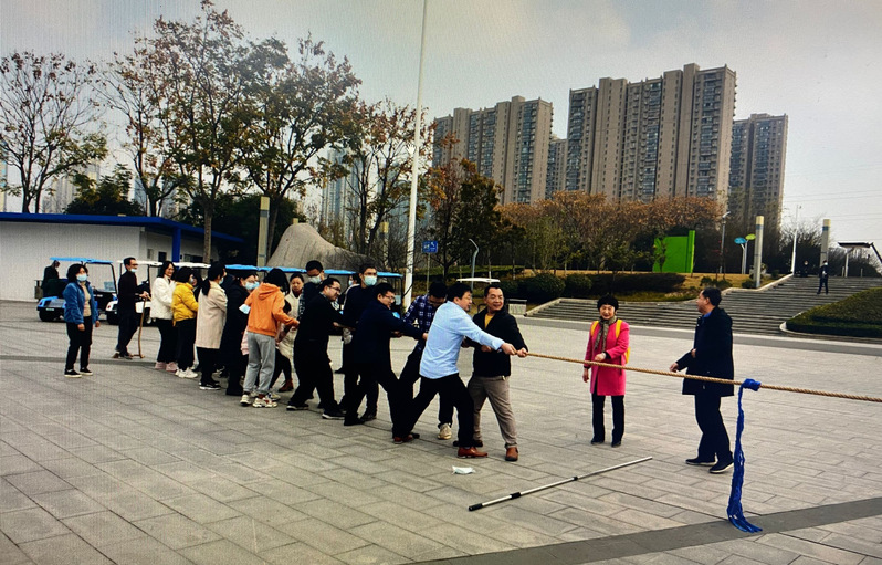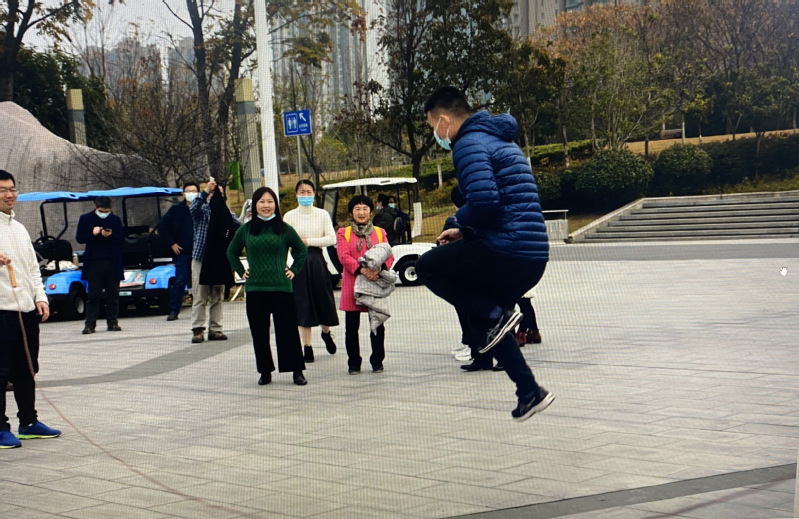 老师们行走至建设四路江滩后折返至建设一路,接着在江滩广场上举行了拔河、跳绳、拉力、哑铃、踢毽子等趣味比赛活动。老师们摩拳擦掌,踊跃参赛,加油声、喝彩声此起彼伏,比赛场地一片欢声笑语。